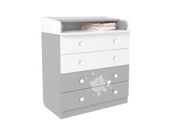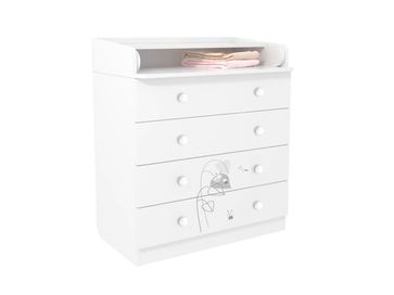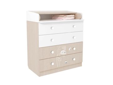 Детский комод-трансформер Френч-3 с милыми рисунками на фасаде сочетает в себе функции вместительного комода и пеленального столика. Это практичный и функциональный предмет мебели, который не только сэкономит, но и украсит пространство комнаты.<br> Преимущества:<br> функциональный — комод и пеленальный столик в одном предмете мебели;<br> вместительный — 4 выдвижных ящика на роликовых направляющих;<br> милый дизайн — фасад дополнен очаровательными рисунками;<br> трансформер — удобная откидная поверхность для пеленания.<br><br> В конструкции комода предусмотрены 4 выдвижных ящика на роликовых направляющих для хранения игрушек, одежды, предметов гигиены и других важных мелочей.<br> Комод оснащен удобным откидным столиком для пеленания, который в закрытом виде превращается в еще одну полочку для хранения. По мере взросления малыша пеленальную поверхность можно снять и использовать комод дальше в качестве самостоятельного элемента.<br> Размер пеленального столика (ШхГ) — 770 х 740 мм. None Страна производства: Россия