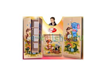 Аэрографический цветной рисунок Ящик на роликовых направляющих Внутри шкафа пять полочек и отсек для вешания одежды Отсутствуют острые углы Материал — фасад МДФ, корпус ДСП Для отделки используются безопасные нетоксичные материалы и красители Размер: ВхШхГ 1700х800х450 мм Цвет: клен и орех None