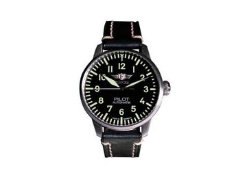Классическая модель. Ремешок сшит из черной телячьей кожи. Корпус из нержавеющей стали. Диаметр 42 мм. Сапфировое стекло. Водостойкость 5 ATM. Engraved stainless. steel crown, Zifferblatt mattschwarz mit Leuchtziffern und indices Leuchtzeiger, Qualit?tswerk Miyota 821A, Automatik 21 Steine. с сертификатом в тонкой деревянной коробке. сделано в Германии None