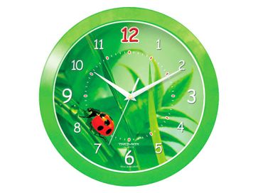 Настенные часы Божья коровка с по-летнему ярким циферблатом станут прекрасным украшением интерьера. Стрелки приводит в движение бесшумный механизм, а стекло надежно защищает корпус от пыли и случайных брызг.<br>