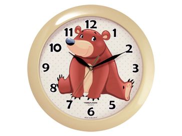 Настенные часы Медвежонок прекрасно подходят для обустройства детской комнаты. Забавный рисунок создает интересный акцент, а крупные цифры легко различимы даже с большого расстояния. Модель оснащена защитным стеклом и надежным механизмом с плавным и бесшумным ходом.<br>
