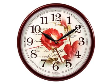 Настенные часы Цветы станут настоящим украшением интерьера в стиле прованс. Минеральное стекло защищает циферблат от пыли и потери цвета, а бесшумный механизм позволяет устанавливать модель в любом помещении.<br>