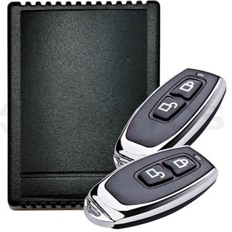 Комплект включает в себя 2-х канальный приёмник чёрного цвета и два миниатюрных передатчика (брелока).