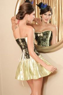 Корсет грушевого цвета украшен черным кружевом. Спереди на застежке-крючке, сзади - на люверсах. Юбочка в комплекте. В наличии M 2 шт None Есть доставка.