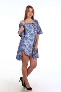 Закажите Комплект халатик+сорочка - Зимний сад | синий у компании GIPER-TEX в России на портале Alloy: