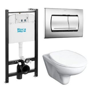 - Комплект Roca Mitos 89310002 подвесной унитаз + инсталляция + кнопка + сиденье по выгодной цене 14 780 р. руб.;