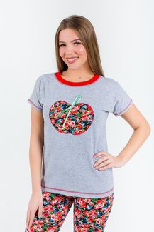 Закажите Комплект женский Амели футболка+бриджи серый с розами у компании GIPER-TEX в России на портале Alloy:
