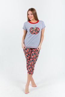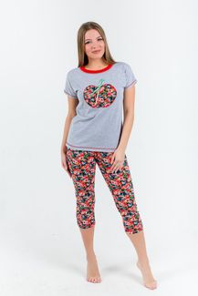 - Комплект женский Амели футболка+бриджи серый с розами по выгодной цене 412 р. руб.;