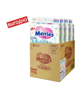 Подгузники Merries в транспаке из 4 пачек сразу. Подгузники защищают ребенка от протеканий, позволяют коже дышать. Каждая пачка включает 90 подгузников. Наличные, Visa/MasterCard, Яндекс.Деньги, WebMoney Возможен самовывоз. Есть доставка.