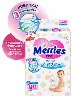 Транспак подгузников Merries M по 64 штуки в каждой упаковке. Для детей весом 6-11 кг. С тремя дышащими слоями. Наличные, Visa/MasterCard, Яндекс.Деньги, WebMoney Возможен самовывоз. Есть доставка.