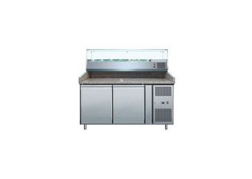 Холодильные столы для пиццы Cooleq изготовлены из нержавеющей стали с искусственным охлаждением внутреннего объема (встроенный холодильный шкаф). Столешница его обычно выполняется из нержавеющей стали, гранита или мрамора и служит рабочей поверхностью дл None