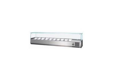 Технические характеристики. Габариты 1800335435 мм. Мощность 1,6 кВт. Напряжение 220 В. Витрина холодильная VRX 1800/330 эк предназначена для компонентов пиццы. Полностью выполнена из нержавеющей стали. Имеется статическое охлаждение, бесшовный испари None