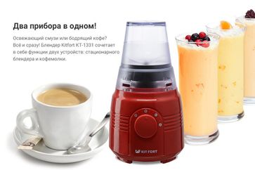 - 2 в 1 блендер и кофемолка Kitfort 1331-2-КТ красный по выгодной цене 2 750 р. руб.;