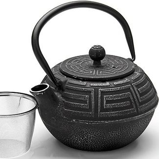 Чайник заварочный чугунный. Цвет: черный. Материал: чугун. Внутреннее/внешнее покрытие: термостойкий лак. Фильтр: нержавеющая сталь. Объем: 1500 мл. Вес: 2200 г. Размер упаковки: 18 х 18 х 11,5 см. МВ (х8). Страна производитель: Китай. Заварочный чайник изготовлен из чугуна высокого качества. Внутренняя и внешняя поверхности чайника покрыты термостойким лаком, который защищает металл от ржавчины и препятствует возникновению металлического привкуса у напитка. Размещенный внутри чайника сетчатый фильтр гарантирует прозрачность и чистоту напитка от чайных листьев. За счет равномерного распределения тепла внутри чайника, напиток получается максимально вкусным и насыщенным. Так как чугунные чайники дольше других удерживают тепло, то и вода в нем будет оставаться горячей и пригодной для заваривания чая долгое время. Этот чайник украсит любую чайную церемонию, благодаря своему стильному восточному дизайну или просто станет прекрасным подарком на торжество. Мыть без применения абразивных моющих средств. Не подходит для мытья в посудомоечной машине. Не подходит для использования на открытом огне. None