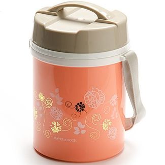 Термос в комплекте МВ(х24). Корпус, крышка: полипропилен. Цвет: коралловый/серый. Контейнер с крышкой: 3 шт. Внутренняя колба: сталь. Объем: 1800 мл. Размер упаковки: 17,2 х 17,2 х 26 см. Вес: 955 г. Страна-изготовитель: Китай. Упаковка: коробка. Пищевой термос MAYER& BOCH станет прекрасным дополнением к набору ваших кухонных принадлежностей. Термос предназначен для длительного хранения горячих блюд, сохраняя нужную температуру до 5-ти часов. Корпус выполнен из цветного полипропилена и декорирован цветочным узором. Внутренний резервуар - из высококачественной нержавеющей стали, не вступающей в реакцию с продуктами и не искажающей вкус приготовленных блюд. Данный термос обладает не только прекрасными термоизоляционными качествами, но и непревзойденной надежностью. Благодаря эргономичной ручке и ремню его легко и удобно транспортировать. В широкое горлышко термоса помещены три контейнера с крышками, изготовленные из пищевого пластика белого цвета. Крышки легко открываются и плотно закрываются с помощью легкого щелчка. Это идеальный вариант для переноски нескольких разных блюд. В комплекте: термос, крышка, 1 пластиковая ложка, 3 контейнера с крышками. Подходит для мытья в посудомоечной машине. None