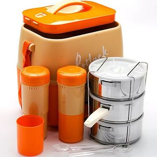 Термоконтейнер МВ(х6). Материал: полипропилен. Цвет: оранжевый. Объем контейнеров: 1 л. Объем термокружки: 0,5 л. Объем стакана: 0,2 л. Объем: 3600 мл. Размер упаковки: 28 х 20 х 28,2 см. Вес: 2080 г. Страна-изготовитель: Китай. Упаковка: коробка. Термоконтейнер MAYER& BOCH представляет собой набор посуды для длительного хранения горячих блюд, сохраняя нужную температуру до 5-ти часов. Выполнен из цветного пищевого пластика и высококачественной нержавеющей стали, не вступающей в реакцию с продуктами и не искажающей вкус приготовленных блюд. Данный контейнер обладает не только прекрасными термоизоляционными качествами, но и непревзойденной надежностью. Благодаря ремню для переноски, его легко и удобно транспортировать. Такой термоконтейнер идеально подойдет для отдыха на природе. В комплекте: контейнер, крышка, 3 контейнера для еды, 1 крышка для контейнеров, 1 подставка и 1 ручка для контейнеров, 2 термоса, 2 стакана, 2 ложки. Подходит для мытья в посудомоечной машине. None