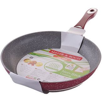 Сковорода МВ (x6). Материал: алюминий. Внутреннее покрытие: антипригарное. Диаметр: 28 см. Высота борта: 5,5 см. Ручка: бакелит. Размер упаковки: 48 х 28,5 х 8 см. Вес: 900 г. Страна производитель: Китай.Сковорода с мраморной крошкой MAYER& BOCH выполнена из качественного литого алюминия и снабжена антипригарным покрытием особой прочности. Покрытие антипригарное жаропрочное, защищает сковороду от царапин, является экологически чистым и полностью безопасным, без вредных соединений и примесей. За счет того, что пища не пригорает и не пристает к покрытию сковороды, ее легко и быстро мыть. Прочное индукционное дно сковороды устойчиво к повреждениям и деформации. Эргономичная ручка из бакелита не нагревается и не скользит. Такая сковорода является незаменимой для жарки и тушения различных блюд. Крышка – термостойкое стекло. Подходит для использования на всех типах плит. Подходит для мытья в посудомоечной машине. None