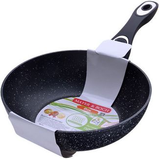 Сковорода-ВОК МВ (x10). Материал: алюминий. Внутреннее покрытие: антипригарное. Диаметр: 24 см. Высота борта: 7,5 см. Ручка: бакелит. Размер упаковки: 43 х 24 х 10 см. Вес: 0,835 кг. Страна производитель: Китай.Сковорода-ВОК MAYER& BOCH выполнена из качественного алюминия и снабжена супер прочным антипригарным покрытием. Покрытие антипригарное жаропрочное, защищает сковороду от царапин, является экологически чистым и полностью безопасным, без вредных соединений и примесей. За счет того, что пища не пригорает и не пристает к покрытию сковороды, ее легко и быстро мыть. Прочное индукционное дно сковороды устойчиво к повреждениям и деформации. Эргономичная ручка из бакелита не нагревается и не скользит, а крышка из прозрачного стекла позволит следить за процессом приготовления еды. Такая сковорода является незаменимой для жарки и тушения различных блюд. Подходит для использования на всех типах плит. Подходит для мытья в посудомоечной машине. None