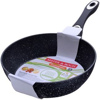 Сковорода-сотейник МВ (x10). Материал: алюминий. Внутреннее покрытие: антипригарное. Диаметр: 28 см. Высота борта: 7см. Ручка: бакелит. Размер упаковки: 45 х 28 х 7 см. Вес: 0,886 кг. Страна производитель: Китай.Сковорода-сотейник с мраморной крошкой MAYER& BOCH выполнен из качественного алюминия и снабжен антипригарным покрытием особой прочности. Покрытие антипригарное жаропрочное, защищает сотейник от царапин, является экологически чистым и полностью безопасным, без вредных соединений и примесей. За счет того, что пища не пригорает и не пристает к покрытию сотейника, его легко и быстро мыть. Прочное индукционное дно сотейника устойчиво к повреждениям и деформации. Эргономичная ручка из бакелита не нагревается и не скользит. Такой сотейник является незаменимой для жарки и тушения различных блюд. Подходит для использования на всех типах плит. Подходит для мытья в посудомоечной машине. None