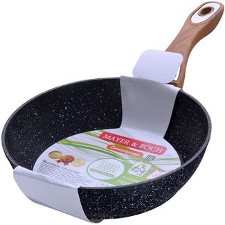 Сковорода-сотейник МВ (x10). Материал: алюминий. Внутреннее покрытие: антипригарное. Диаметр: 24 см. Высота борта: 6,5 см. Ручка: бакелит. Размер упаковки: 45 х 26 х 7 см. Вес: 0,720 кг. Страна производитель: Китай.Сковорода-сотейник с мраморной крошкой MAYER& BOCH выполнен из качественного алюминия и снабжен антипригарным покрытием особой прочности. Покрытие антипригарное жаропрочное, защищает сотейник от царапин, является экологически чистым и полностью безопасным, без вредных соединений и примесей. За счет того, что пища не пригорает и не пристает к покрытию сотейника, его легко и быстро мыть. Прочное индукционное дно сотейника устойчиво к повреждениям и деформации. Эргономичная ручка из бакелита не нагревается и не скользит. Такой сотейник является незаменимой для жарки и тушения различных блюд. Подходит для использования на всех типах плит. Подходит для мытья в посудомоечной машине. None
