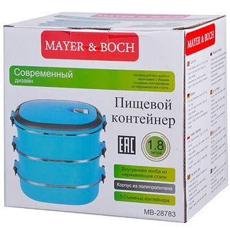 Термос пищевой МВ (х24). Корпус, крышка: полипропилен. Внутренняя колба: нержавеющая сталь. Объем: 1800 мл. Размер упаковки: 20,1 х 14,8 х 19,5 см. Вес: 670 г. Страна-изготовитель: Китай. Упаковка: коробка.Пищевой термос MAYER& BOCH станет прекрасным дополнением к набору ваших кухонных принадлежностей. Термос предназначен для длительного хранения горячих блюд, сохраняя нужную температуру. Корпус выполнен из цветного полипропилена. Внутренний резервуар - из высококачественной нержавеющей стали, не вступающей в реакцию с продуктами и не искажающей вкус приготовленных блюд. Данный термос обладает не только прекрасными термоизоляционными качествами, но и непревзойденной надежностью. Благодаря эргономичной ручке его легко и удобно транспортировать. Крышка плотно закрывается. Это идеальный вариант для переноски нескольких разных блюд. Подходит для мытья в посудомоечной машине. None