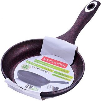 Сковорода МВ (x12). Материал: алюминий. Покрытие: антипригарное. Толщина: стенки 2 мм, дно 2,5 мм. Диаметр: D 18 х 4 см. Ручка: бакелит. Упаковка: пакет. Вес: 430 г. Страна производитель: Турция.Сковорода с мраморной крошкой MAYER& BOCH выполнена из качественного литого алюминия и снабжена антипригарным покрытием особой прочности. Покрытие антипригарное жаропрочное, защищает сковороду от царапин, является экологически чистым и полностью безопасным, без вредных соединений и примесей. За счет того, что пища не пригорает и не пристает к покрытию сковороды, ее легко и быстро мыть. Прочное индукционное дно сковороды устойчиво к повреждениям и деформации. Эргономичная ручка из бакелита не нагревается и не скользит. Такая сковорода является незаменимой для жарки и тушения различных блюд. Подходит для использования на всех типах плит. Подходит для мытья в посудомоечной машине. None