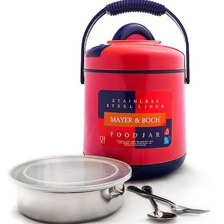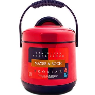 Термос в комплекте МВ(х12). Корпус, крышка: полипропилен. Цвет: красный,синий. Контейнер: сталь, пластик. Вилка, ложка: сталь. Внутренняя колба: сталь. Объем: 1900 мл. Размер упаковки: 18 х 17,5 х 23 см. Вес: 1215 г. Страна-изготовитель: Китай. Упаковка: коробка. Пищевой термос MAYER& BOCH станет прекрасным дополнением к набору ваших кухонных принадлежностей. Термос предназначен для длительного хранения горячих блюд, сохраняя нужную температуру до 5-ти часов. Цветной корпус выполнен из полипропилена. Внутренний резервуар и контейнер для еды - из высококачественной нержавеющей стали, не вступающей в реакцию с продуктами и не искажающей вкус приготовленных блюд. Вилка и ложка из стали. Данный термос обладает не только прекрасными термоизоляционными качествами, но и непревзойденной надежностью. Благодаря большой и эргономичной ручке его легко и удобно транспортировать. В комплекте: термос, крышка, контейнер с крышкой, 1 вилка, 1 ложка. Подходит для мытья в посудомоечной машине. None