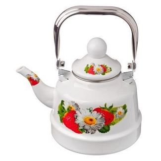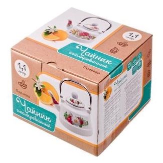 Чайник объемом 1,1 л из углеродистой стали с эмалированным покрытием белого цвета, снаружи декорирован цветочной деколью, укомплектован крышкой, подходит для использования на всех типах плит, включая индукцию. None Возможен самовывоз. Есть доставка.