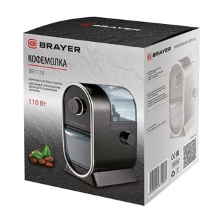 - Кофемолка Brayer BR1170, жерновая, ёмкость 100 г., 110 Вт, регулировка помола по выгодной цене 3 491 р. руб.;