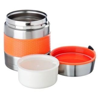 Термос ланч-бокс объемом 1,0л с металлической колбой и в корпусе из нержавеющей стали с силиконовой вставкой оранжевого цвета, с дополнительным пластиковым контейнером, с завинчивающейся крышкой, укомплектован ремешком. None Возможен самовывоз. Есть доставка.