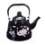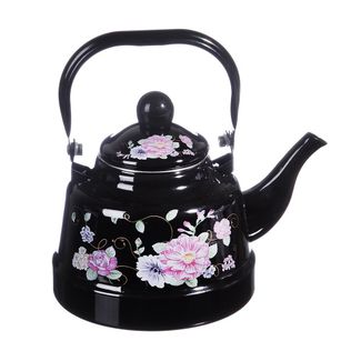 Чайник объемом 2,5 л из углеродистой стали с эмалированным покрытием черного цвета, снаружи декорирован цветочной деколью, укомплектован крышкой, подходит для использования на всех типах плит, включая индукцию. None Возможен самовывоз. Есть доставка.