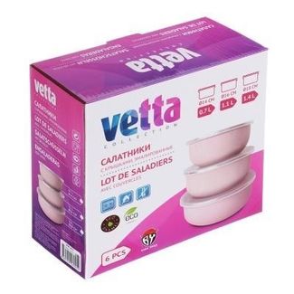 - VETTA Набор эмал. салатников с крышками, 6пр(14 16 18см, 0,7 1,1 1,4л) Глянец, розовый по выгодной цене 1 191 р. руб.;