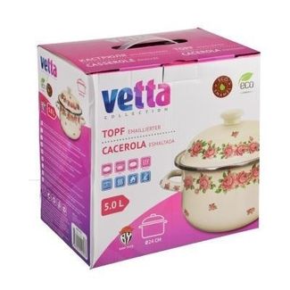 - VETTA Розанна Кастрюля эмалированная, 24см, 5,0л, индукция по выгодной цене 3 024 р. руб.;