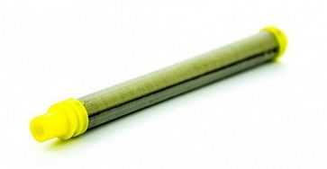 Правильно подобранный фильтр - это залог успеха. желтый 100 Mesh (размер ячеек 0,14 мм). Фильтр предназначен для установки в ручку окрасочного пистолета безвоздушного распыления и служит для тонкой фильтрации краски. Краска перед поступлением в фильтр тонкой очистки уже проходит через фильтр грубой очистки (на заборном шланге), фильтр предварительной очистки (в колбе узла заполнения насоса, у поршневых аппаратов). Фильтр состоит из пластмассового цилиндра с круглыми отверстиями на поверхности обтянутого металлической сеткой.