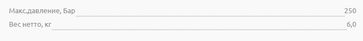 рабочее давление - до 250 Бар
