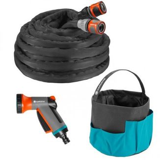 Gardena Шланг текстильный Liano 1/2" 20 м + комплект 18434-20.000.00, Шланг текстильный Liano 13 мм (1/2"), 20 м с комплектом для полива (коннектор стандартный и с автостопом, наконечник для полива Classic арт. 18300, штуцеры резьбовые арт. 18310 и 18200) Минимальная сумма заказа 999.00 руб.