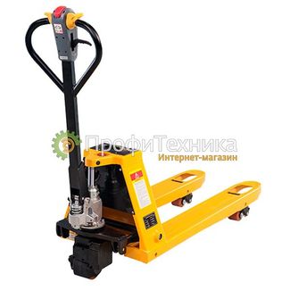 Грузоподъемность 1800 кг, двигатель 0.45 кВт, высота подъема 200 мм, длина вил 1150 мм, общая длина 1640 мм, ширина несущей поверхности вил 550 мм, материал колес полиуретан, вес 100 кг. None