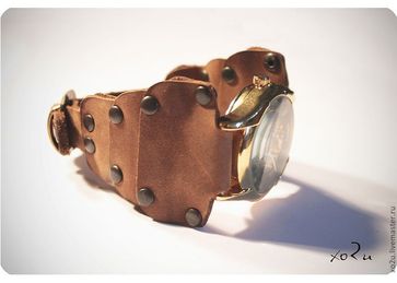Механические часы на авторском браслете в стиле стимпанк. кожа используемая в браслете имеет матово коричневый цвет, без покрытия лака, что делает её приятной на ощупь. браслет не имеет сшитых деталей, тем не менее все они прочно держаться за счёт металлической фурнитуры. None Есть доставка.