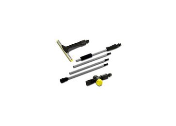 Комплект принадлежностей для минимоек для очистки и сушки окон и стекол зимних садов. Состоит из мягкой щетки для очистки поверхностей, регулируемого шарнира, 3-ступенчатой удлинительной трубки и стяжки. None