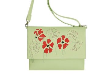 Артикул: cl750 размер: 32x22 материал: искусственная кожа / натуральная кожа декоры: аппликация / машинная вышивка авторы: надежда куприянова клатч нежного ментолового цвета, с алыми маками, выполненными из натуральной замши. декор повторяется и на внутренней стороне клатча. внутри два открытых кармана для мелочей и один карман на молнии. регулируемый съемный ремень в комплекте. если вам нужен другой размер клатча, то вы можете заказать его индивидуальный пошив. None Есть доставка.