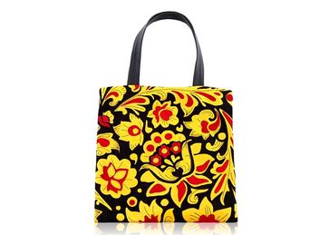 Хохлома́ - старинный русский народный промысел, родившийся в 17 веке в нижнем новгороде. хохлома представляет собой декоративную роспись, выполненную черным и красным а также, изредка, зелёным, жёлтым) цветом по золотистому фону. наша сумка выполнена в стиле черно-краской аппликации из натуральной замши на натуральной коже ярко-желтого цвета. задняя сторона сумки и ручки выполнены из натуральной кожи черного цвета. на задней стенке сумки наружный карман на молнии. закрывается на молнию. внутри: карман на молнии для документов, карман для мобильного телефона и мелочей. возможны любые цветовые решения. размер: 35*35 см, ручки 55 см. None Есть доставка.