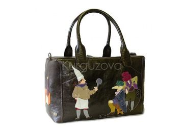 Материал: телячья кожа темно-коричневого цвета. размер - 37+24+18 см. внутри 2 кармана на молнии и 2 открытых. длина ручек 55 см. аппликации на тему спектакля "щелкунчик" в постановки шемякина. None Есть доставка.