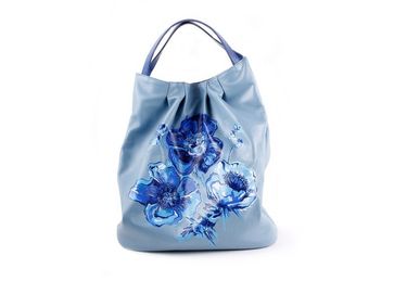 Стильная женская сумочка из натуральной кожи цветы армани. «какая красота!» — именно так реагируют любительницы ярких сумочек на модель «цветы армани» от pelle volare. классический тоут с одной металлической застёжкой по центру сшит из мягкой кожи светло-голубого оттенка и украшен изысканной росписью.