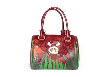 Стильная женская сумочка джунгли. «джунгли»— яркая, стильная сумочка вишнёвого цвета с забавной аппликацией и элементами росписи. модель для весёлых, молодых и дерзких. изюминка данного творения «pelle volare» —контрасты и ещё раз контрасты. это тот случай, когда тёмно-красный чудесно сочетается с ядовито-зелёным, а на классической прямоугольной сумке с двумя ручками кажутся уместными нарочито простые, почти детские аппликации. дизайнеры украсили фигурками африканских зверюшек две стороны, предоставив хозяйкам возможность самостоятельно выбрать «лицо» сумки и, конечно же, снабдили аксессуар внешним и внутренними кармашками. сумка выполнена из натуральной кожи. оформлена аппликацией из натуральной кожи
