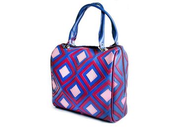 Стильная женская сумочка из натуральной кожи ромбы. сине-малиново-розовая модель «ромбы» создана, чтобы круглый год дарить летнее настроение. кажется, что эта весёлая сумочка с геометрическим орнаментом сшита в стиле пэчворк, но на самом деле лоскутный эффект достигается мастерски выполненной аппликацией. вместительность данной модели тоже на высоте. благодаря усиленному донышку и наличию двух просторных отделений с разделительным карманом между ними, в такой сумке можно смело хранить папку с документами стандартного а4 формата. материал сумки натуральная кожа. аппликация выполнена из натуральной кожи.