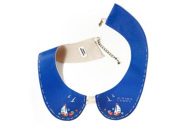 Воротничок "канны": по краю на морзе надпись "французские каникулы" + координаты канн на одной стороне. материал - дешайн, подкладка - бязь, цепочки, искусственная кожа, горный хрусталик размер: 23 на 20 см,регулируемая застёжка None Есть доставка.
