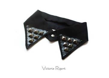 Черный воротник с треугольными краями с застежкой кнопкой из хлопка. отделка углов кожей и металлическими клепками. оригинальное дополнение наряда. на заказ. None Есть доставка.