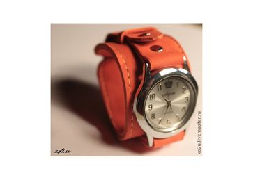 Прекрасные яркий браслет,из бархатистой кожи. часы марки "держава".цвет яркий лосось. None Есть доставка.