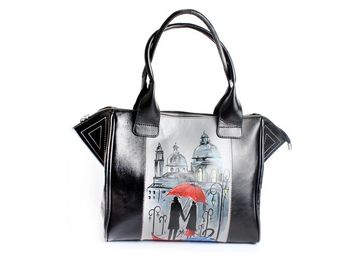 трогательный сюжет, запечатлённый на лицевой стороне сумки «летний дождь», придётся по нраву тонким романтичным натурам, а сама кожаная сумочка, выполненная в универсальных чёрно-серо-красных тонах и украшенная контрастной отстрочкой, не оставит равнодушными любительниц классических аксессуаров.