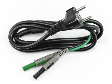 Универсальный измерительный 2-проводной кабель с коннектором в виде евро-вилки (Shuko) для ускоренного тестирования электросетей и цепей (Ф-Н), имеющих подключение к оконечным бытовым электророзеткам ~220 В (2-х и 3-х конт). Длина кабеля 1,5 м, диаметр двух соединителей «банан» (черный/ зеленый) - 4 мм. Максимальная нагрузка - 16А/ 300В (кат III / 300 В). Требуется предоплата